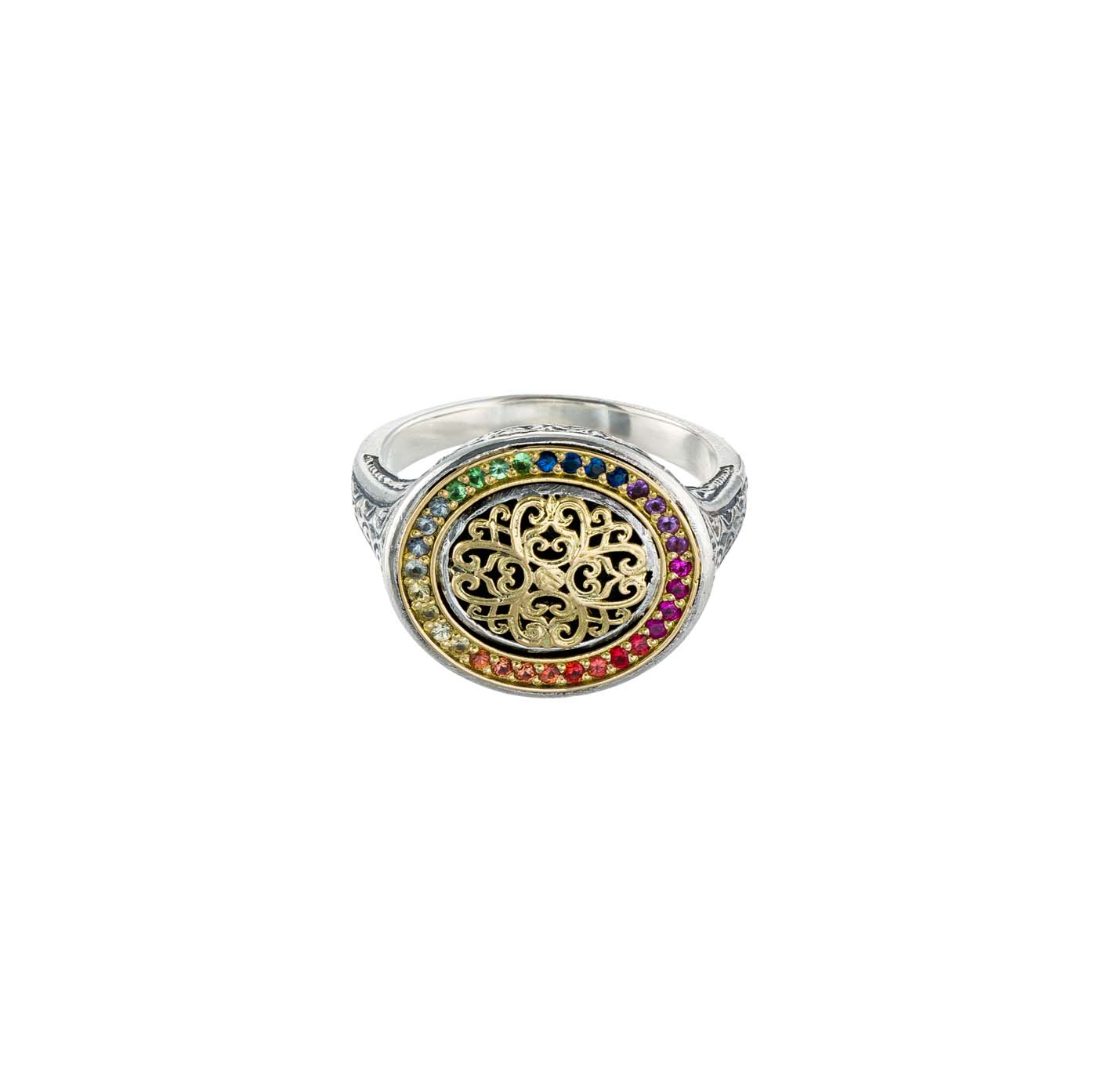 Home / Shop / Women's / Rings / Impressive / Kosmos oval Ring with Rainbow Gemstones in 18K Gold and Sterling Silver