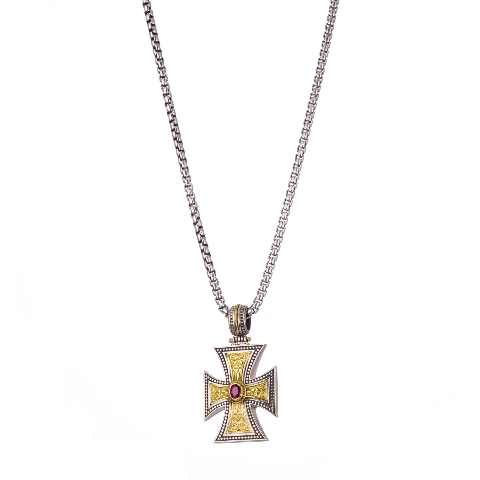 Home / Shop / Men's / Maltese Patmos cross in 18K Gold and Sterling Silver with Ruby