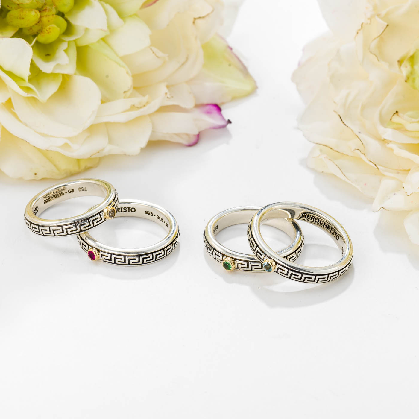 Home / Shop / Women's / Rings / Band / Meander band ring in sterling silver with 18K Gold and Gemstone