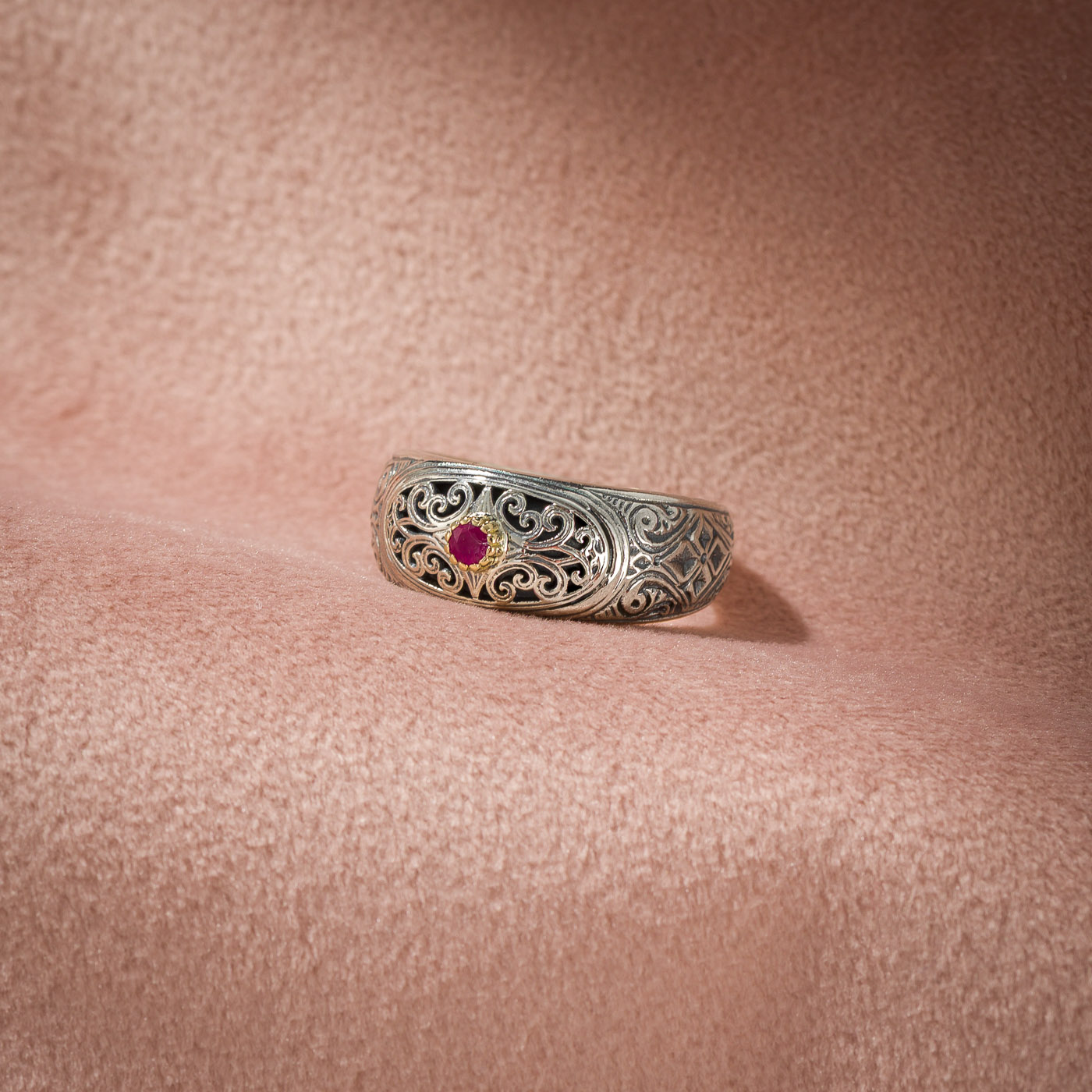 Home / Shop / Women's / Rings / Band / Mediterranean Band Ring in 18K Gold and Sterling Silver with Ruby