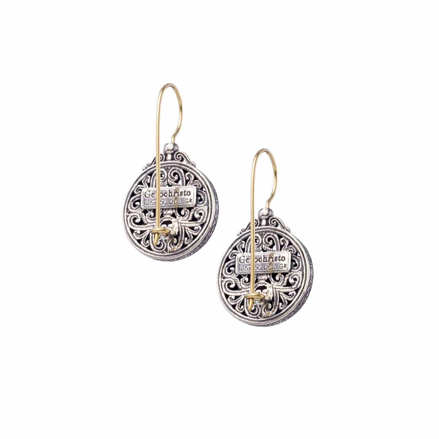 Earrings in 18K solid Yellow Gold, sterling silver and semi precious stones 5mm.