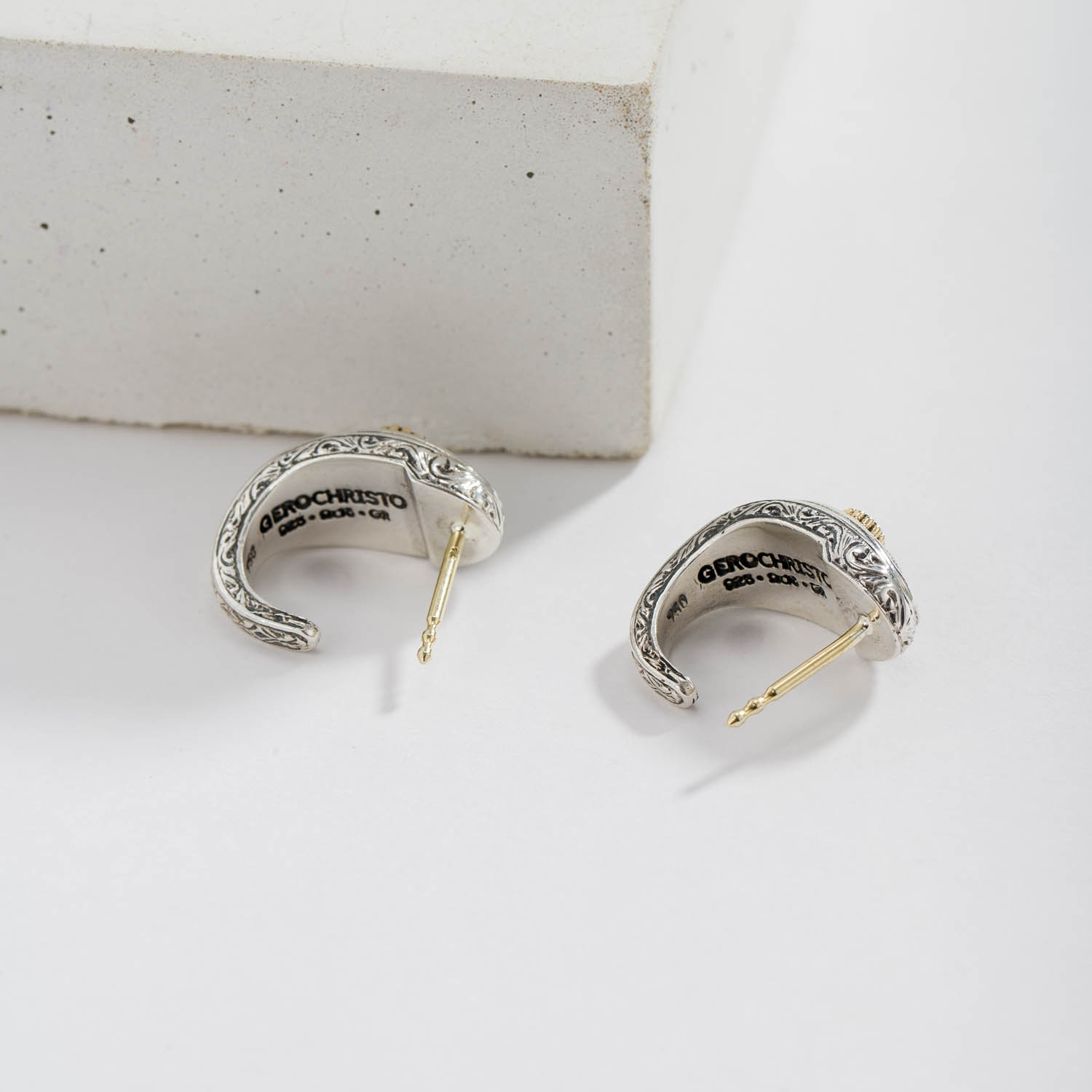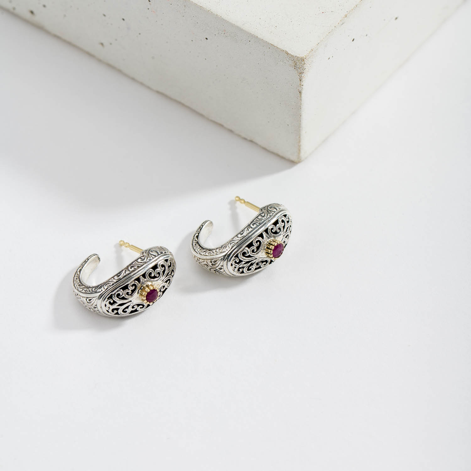 Home / Shop / Women's / Earrings / Hoops / Mediterranean Half Hoop Earrings in 18K Gold and Sterling Silver with Ruby