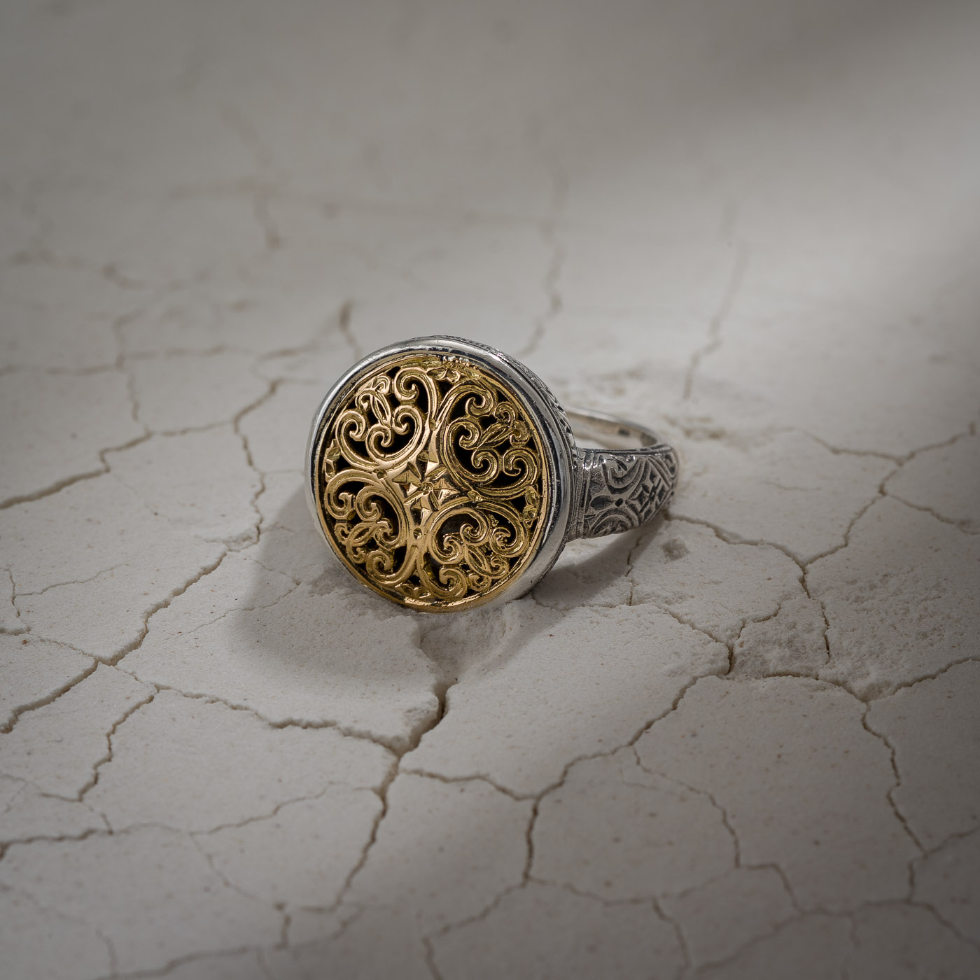 Home / Shop / Women's / Mediterranean round Ring in 18K Gold and Sterling Silver