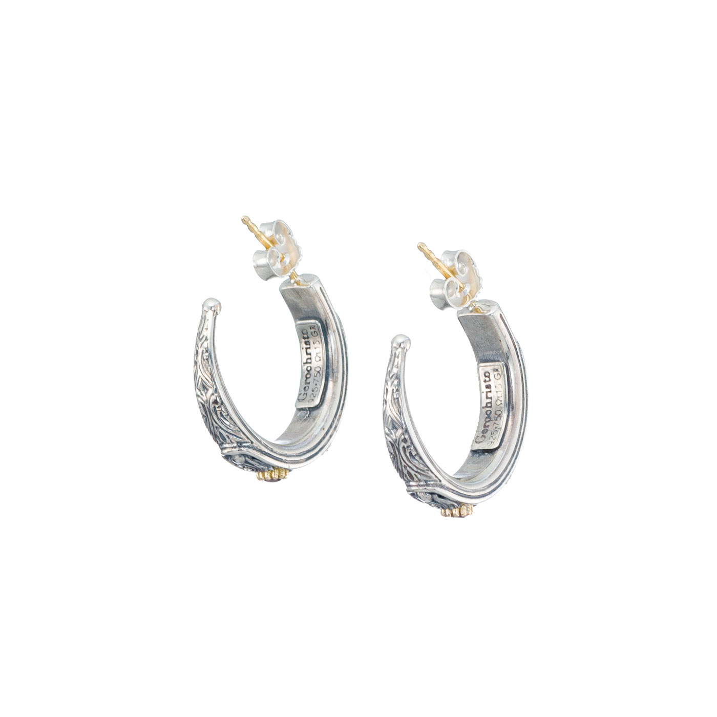 Earrings in 18K solid Yellow Gold and sterling silver with garnet.