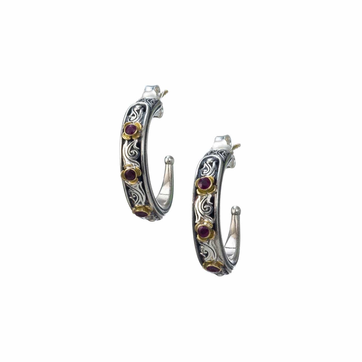 Hoops earrings in 18K solid Yellow Gold and sterling silver with rubies.