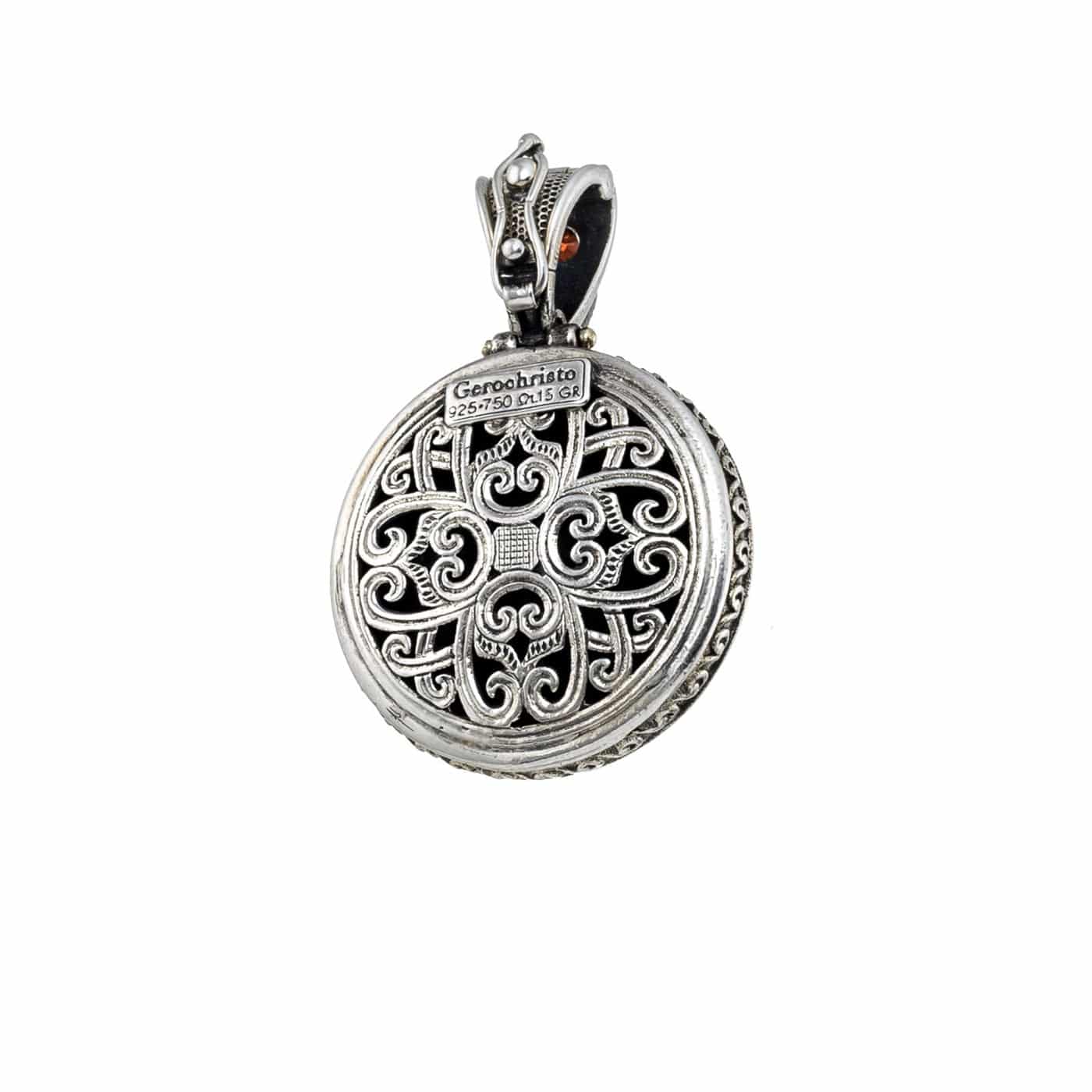 Discover the world of fine jewelry with strong masculinity structure and timeless elegance with our Odysseus Round Pendant, handcrafted in a captivating blend of 18K Gold and Sterling Silver. This pendant is a true masterpiece, reflecting the fusion of tradition and contemporary design that defines Gerochristo Jewelry. It embodies not only adventure and strength but also the profound symbolism of the Christian faith.