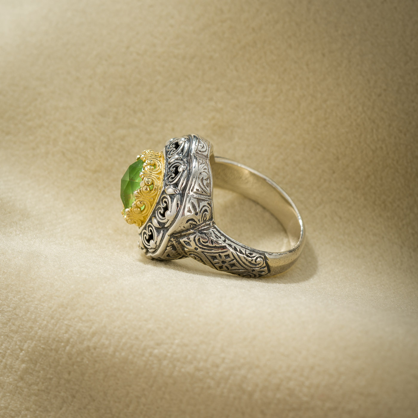 Ring in Sterling Silver with Gold plated parts and doublet gemstone 8x8mm.