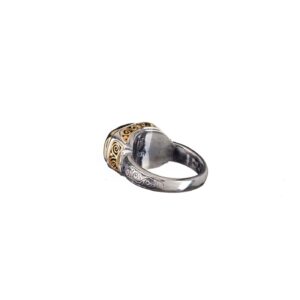 Ring in 18K solid yellow Gold and sterling silver with blue topaz, briolette cushion.