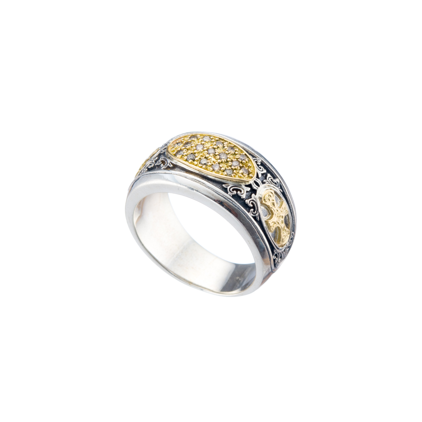 Ring in 18K solid Yellow Gold and sterling silver with brown diamonds 0.2ct