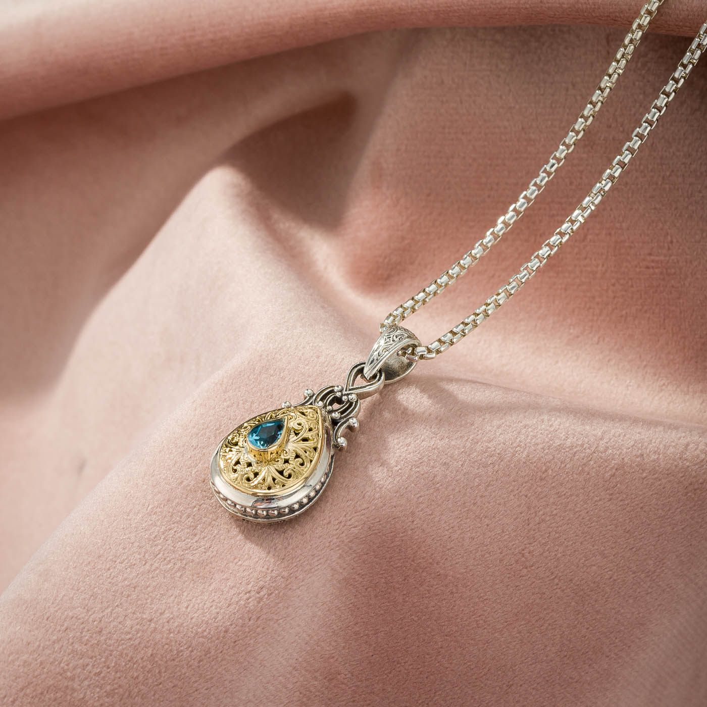 Pendant in 18K solid Yellow Gold and Sterling Silver with Semi precious stone.