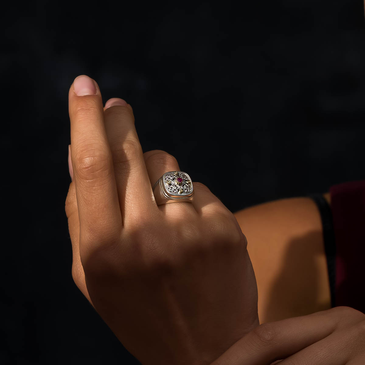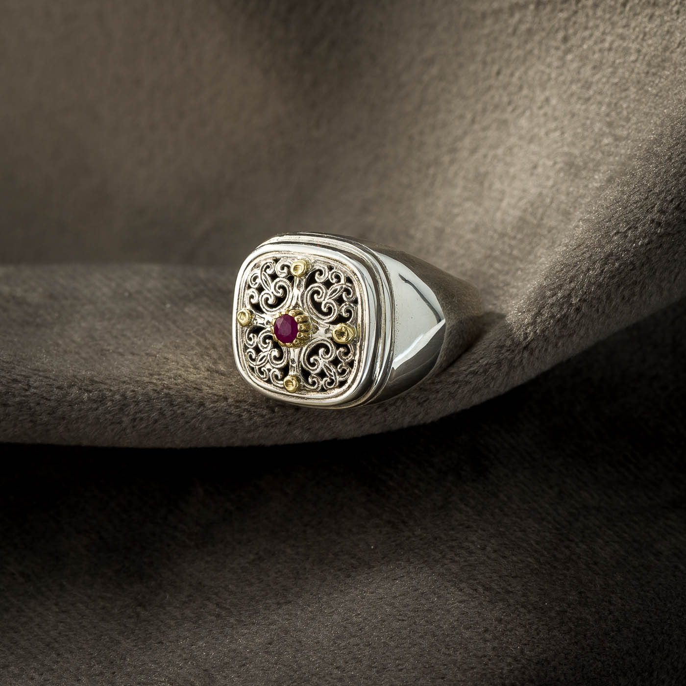 Ring in 18K solid Yellow Gold and Sterling Silver with Ruby.