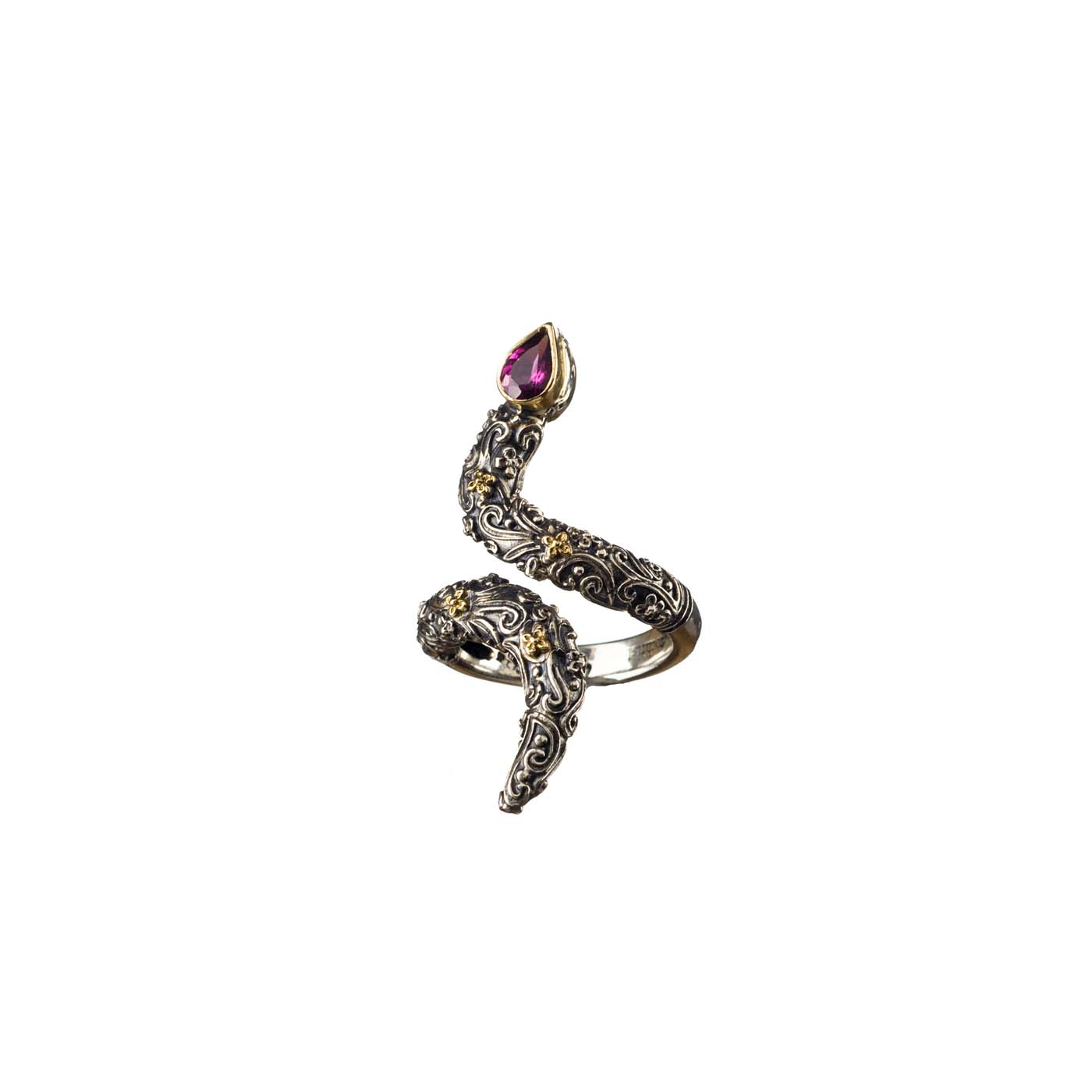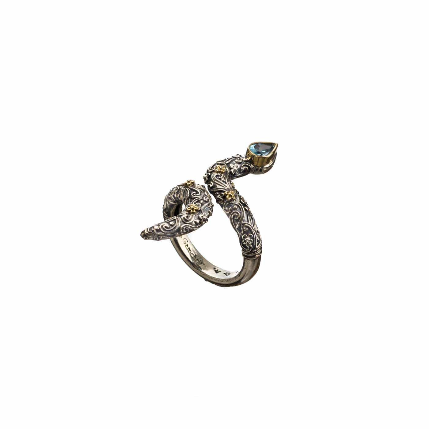 Eden’s Garden Snake ring in 18K Gold and Sterling Silver with blue topaz