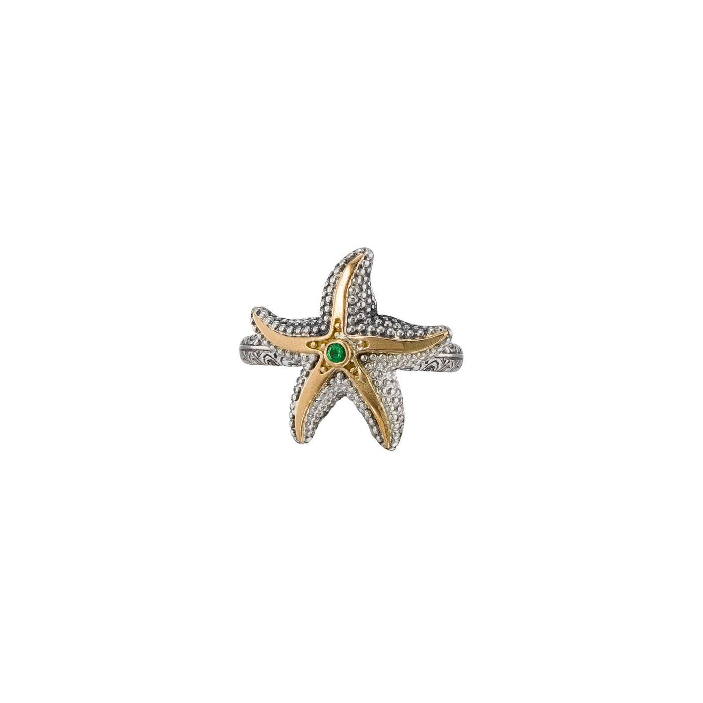 Ring in 18K solid Yellow Gold and Sterling Silver with tsavorite.
