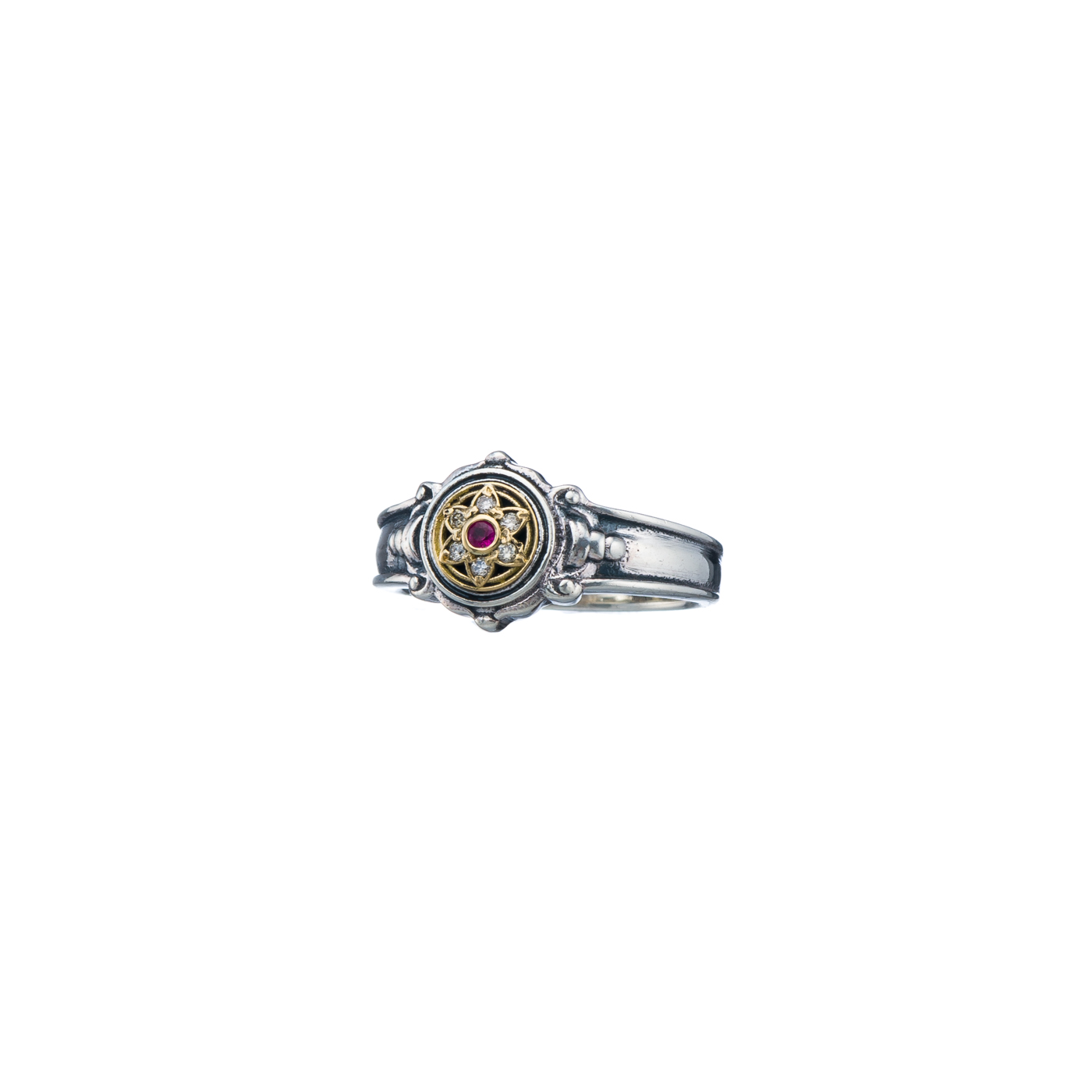 Ring in 18K solid Yellow Gold and Sterling silver with precious stones.