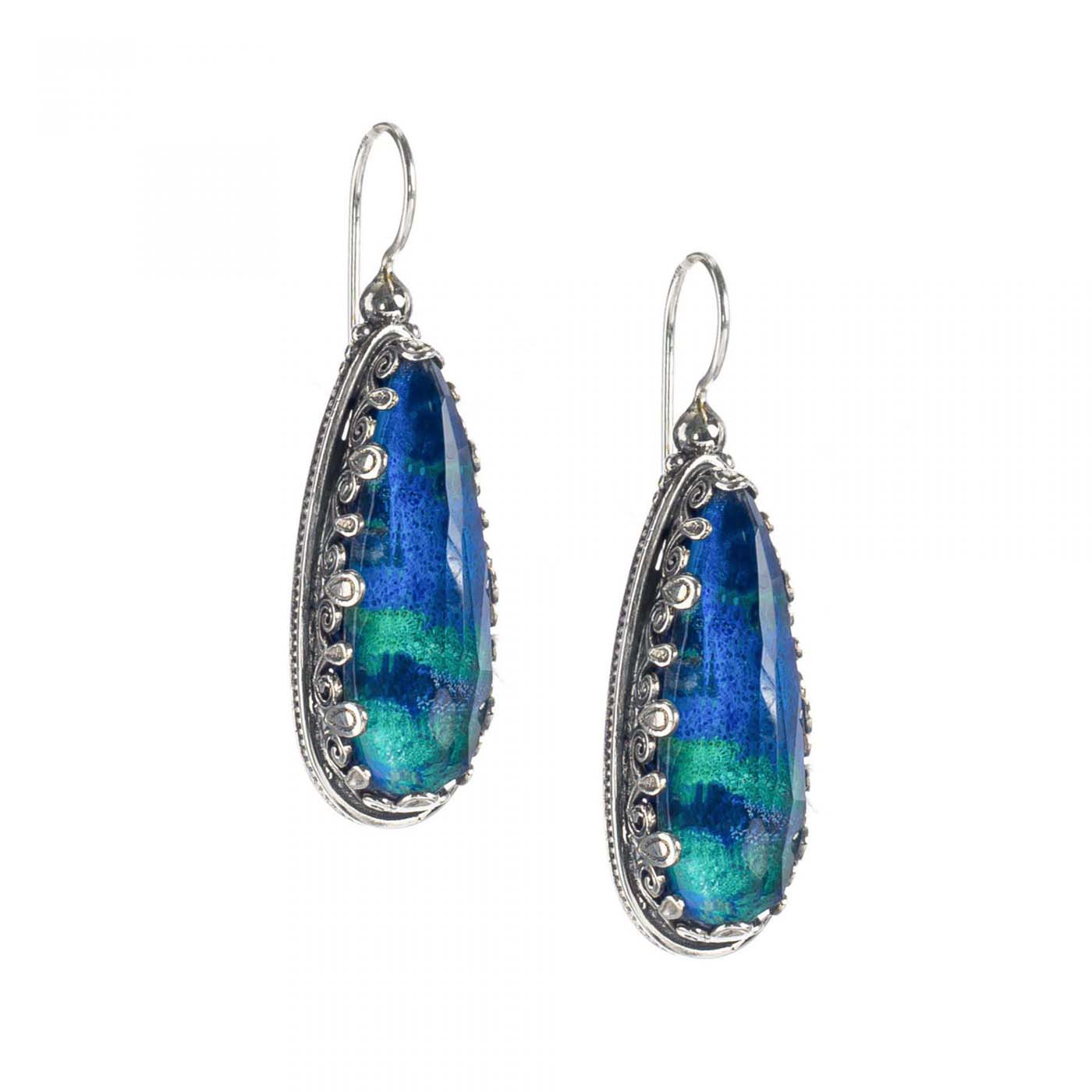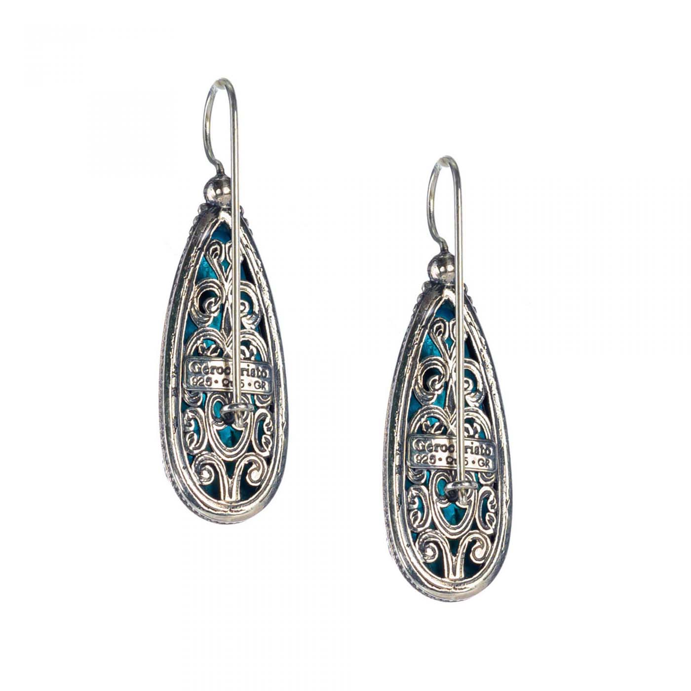 Earrings in sterling silver with doublet stones 10x30mm teardrop.