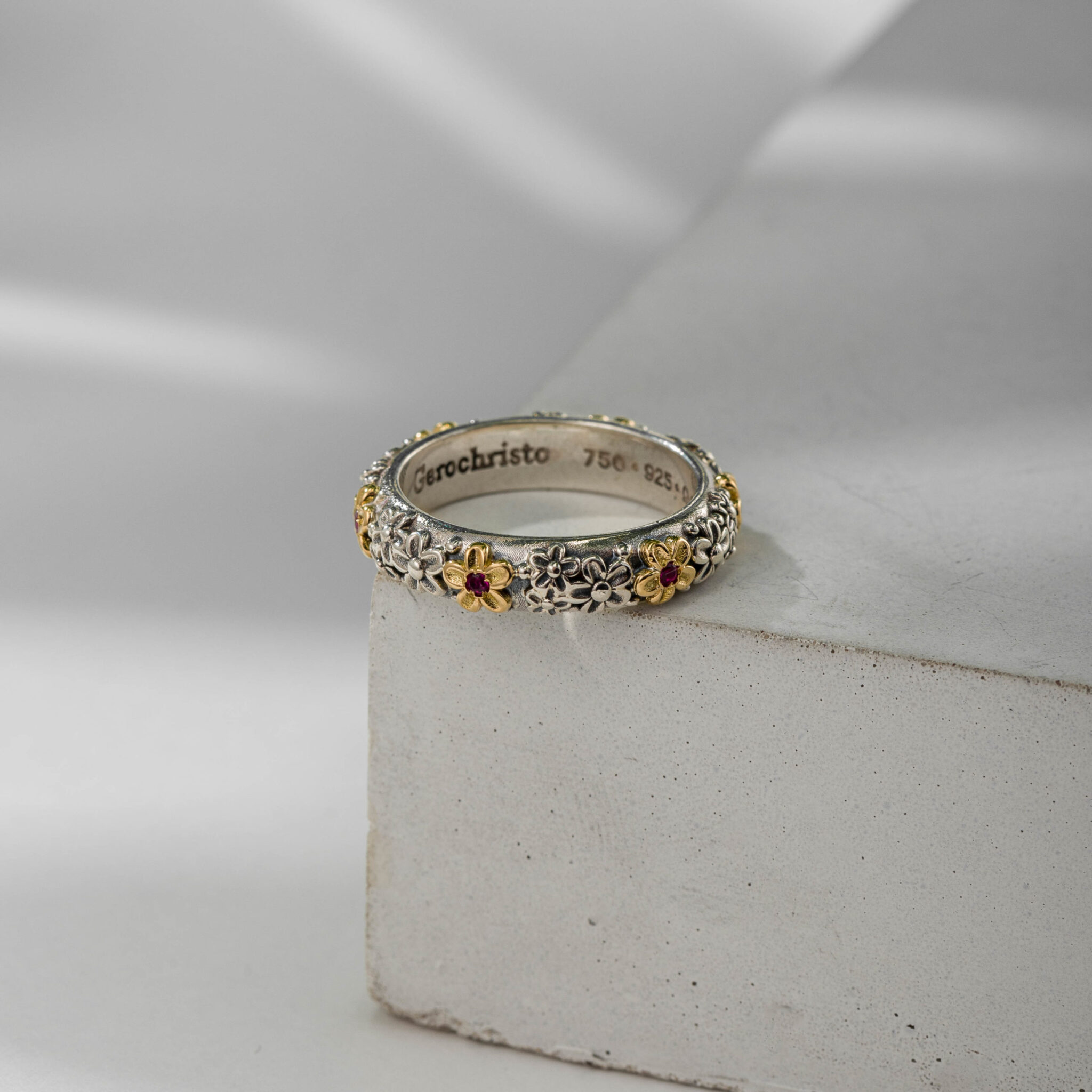 Ring in sterling silver with 18K solid Yellow Gold details and precious stones.