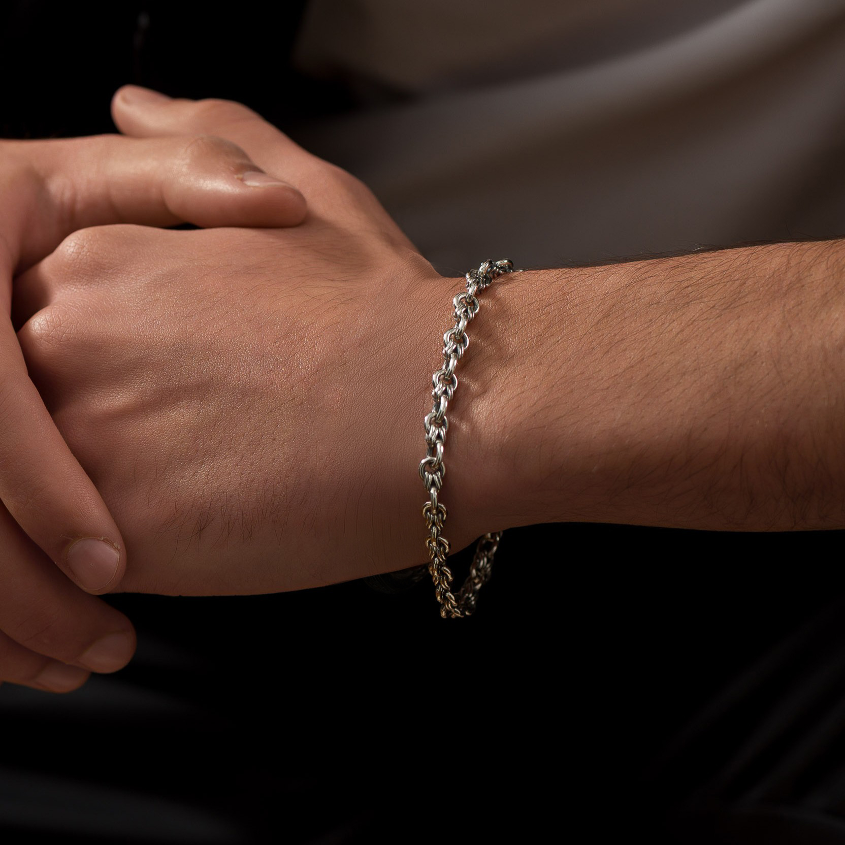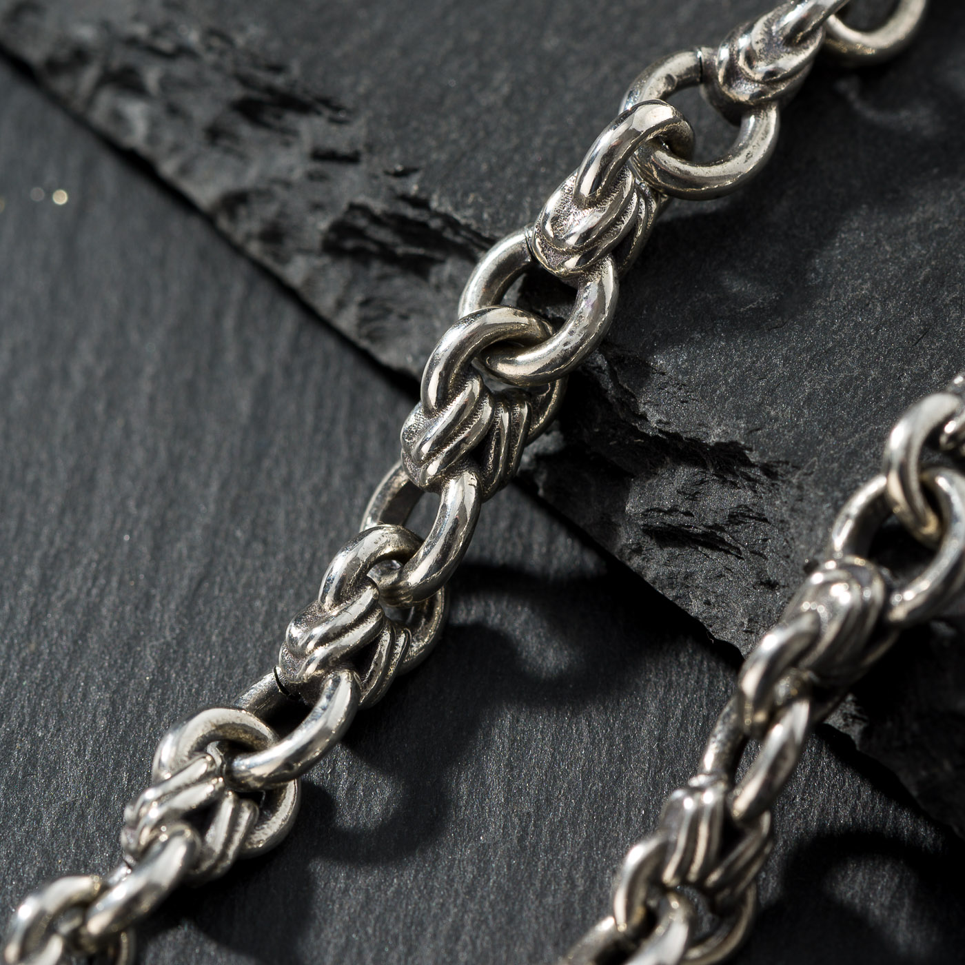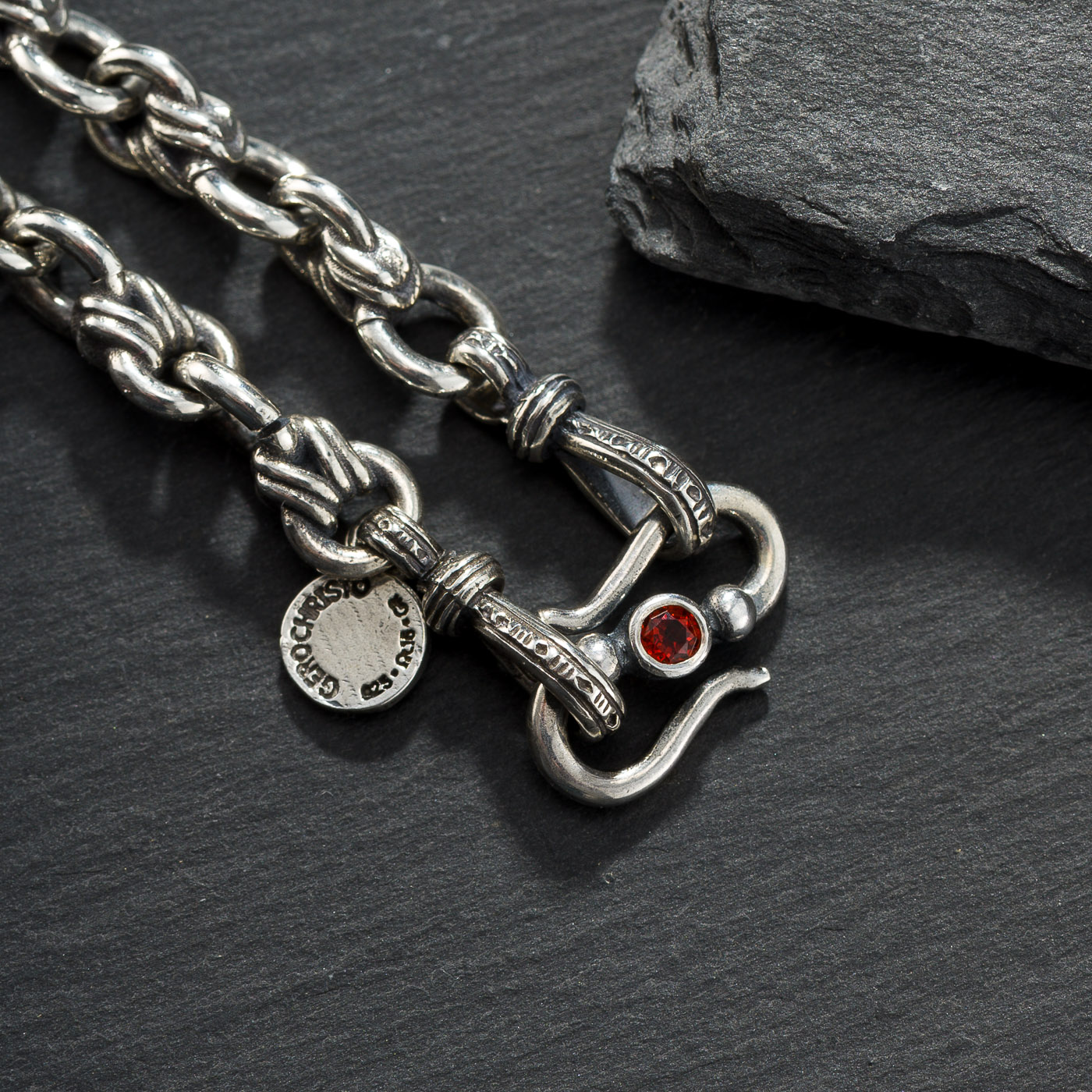 Wrap Link Chain Bracelet in Sterling Silver with Garnet s clasp. (Handmade Chain)
